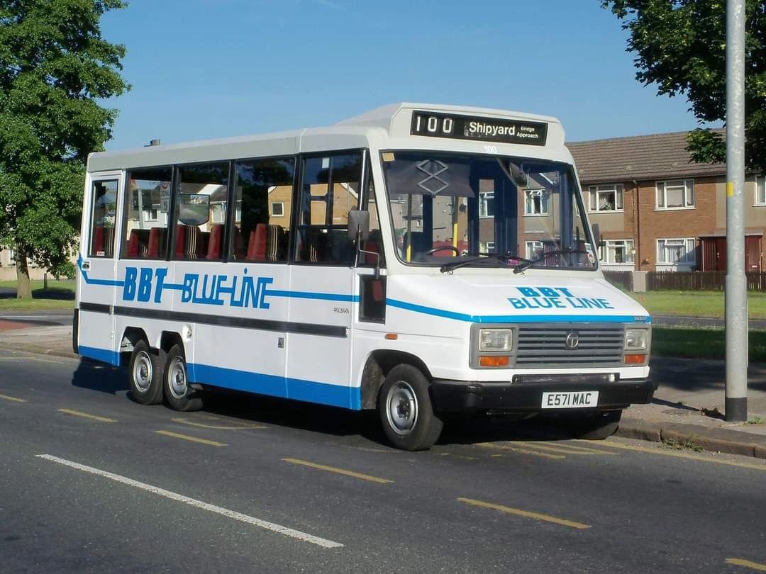 100 - E571 MAC the oddball of our bus fleet, a Talbot Pullman SDB280B5200428850 - Talbot B22F. New to Barrow Borough Transport Ltd June 1988 and re-seated to B18F, returned to leasing company May 1989.